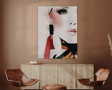 2. Karakoram Vrouwenportret | Blauwe Oorbellen Abstract Schilderij