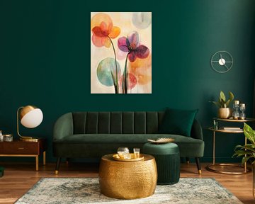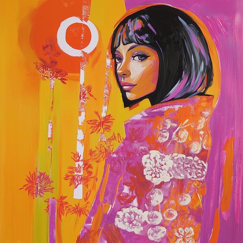 2. Abstracte kunst in retro jaren 70 stijl in oranje, roze, bruin I Dina Dankers