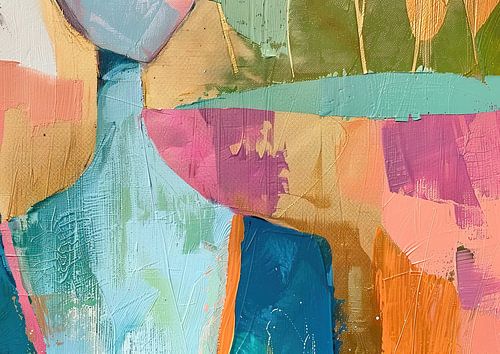 1. Abstracte kunst in retro jaren 70 stijl in oranje, roze, bruin II Dina Dankers