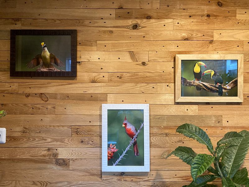 De olijfgroene, groene en bruine tinten uit de Costa Rica collectie zijn als gemaakt voor een natuurlijke of Scandinavische woonstijl. Combineer het diepe olijfgroen met lichte houttinten en beige accenten voor een rustige, harmonieuze uitstraling in je woonkamer of slaapkamer. De blauwe en taupe nuances voegen subtiele afwisseling toe zonder de natuurlijke basis te verstoren. Voor een bohemien sfeer combineer je de aardse bruintinten met rotan, linnen en gedekte kleuren in kussens en plaids. Kies Acrylglas voor extra kleurdiepte of Ingelijst wanneer je de warme tinten wilt benadrukken met een strakke omlijsting.