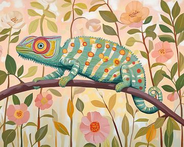 Natuurlijke Kleur | Kleurrijke Kameleon in Bloemenveld van De Mooiste Kunst