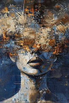 Modern Portret in Goud en Blauw van De Mooiste Kunst