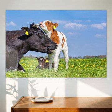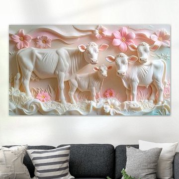 Op zoek naar gezellige koeien wanddecoratie? Koop hier vrolijke en kleurrijke koe schilderijen, of rustgevende fotokunst van koeien in de wei. Deze prachtige landelijke wanddecoratie is veelzijdig en kan bij elk interieur en stijl terecht. Landelijke fotografie en schilderijen van koeien kopen kan bij ons op maat, en op hoogwaardige materialen. Denk aan indrukwekkend fotobehang met koeien in de stal, of kleurrijke koe schilderijen op akoestisch doek om de galm in huis te verminderen.