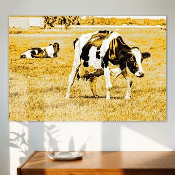 Op zoek naar gezellige koeien wanddecoratie? Koop hier vrolijke en kleurrijke koe schilderijen, of rustgevende fotokunst van koeien in de wei. Deze prachtige landelijke wanddecoratie is veelzijdig en kan bij elk interieur en stijl terecht. Landelijke fotografie en schilderijen van koeien kopen kan bij ons op maat, en op hoogwaardige materialen. Denk aan indrukwekkend fotobehang met koeien in de stal, of kleurrijke koe schilderijen op akoestisch doek om de galm in huis te verminderen.