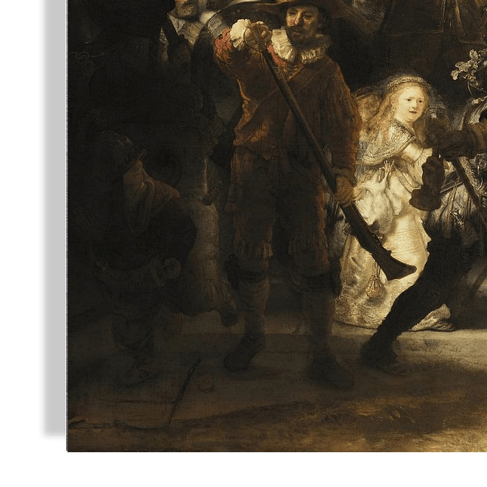 Het canvas toont de twee schutters uit de titel, vergezeld door andere militieleden, alsmede enkele figuranten, terwijl ze zich aan het opstellen zijn. De Nachtwacht is een van de beroemdste schilderijen ter wereld.