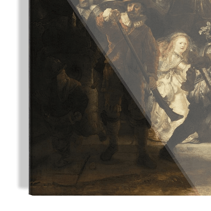 Het canvas toont de twee schutters uit de titel, vergezeld door andere militieleden, alsmede enkele figuranten, terwijl ze zich aan het opstellen zijn. De Nachtwacht is een van de beroemdste schilderijen ter wereld.